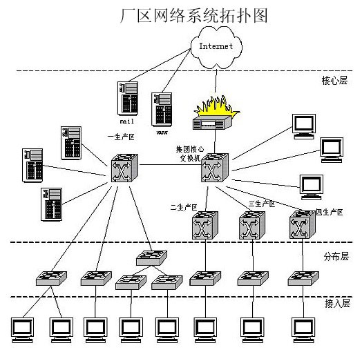2、 廠區(qū)網(wǎng)絡系統(tǒng)拓撲圖