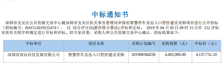 喜報:我公司中標《智慧停車及出入口管控建設采購項目》