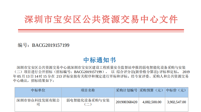 喜報(bào):我公司中標(biāo)《弱電智能化設(shè)備采購與安裝項(xiàng)目》